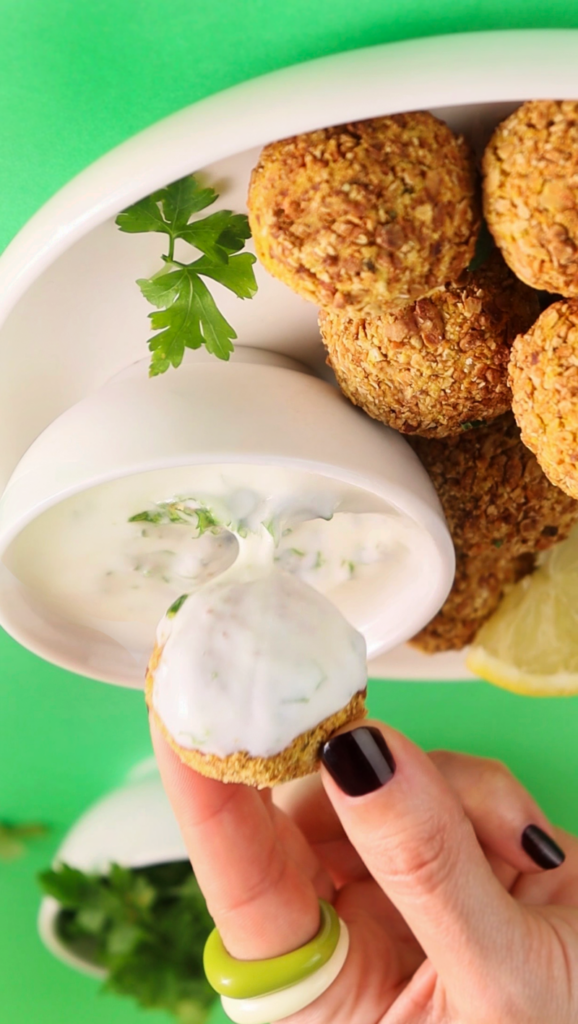 Acompanhar com molho de iogurte natural e ervas frescas, como salsa, hortelã ou coentros, ajustando com limão, sal e pimenta.