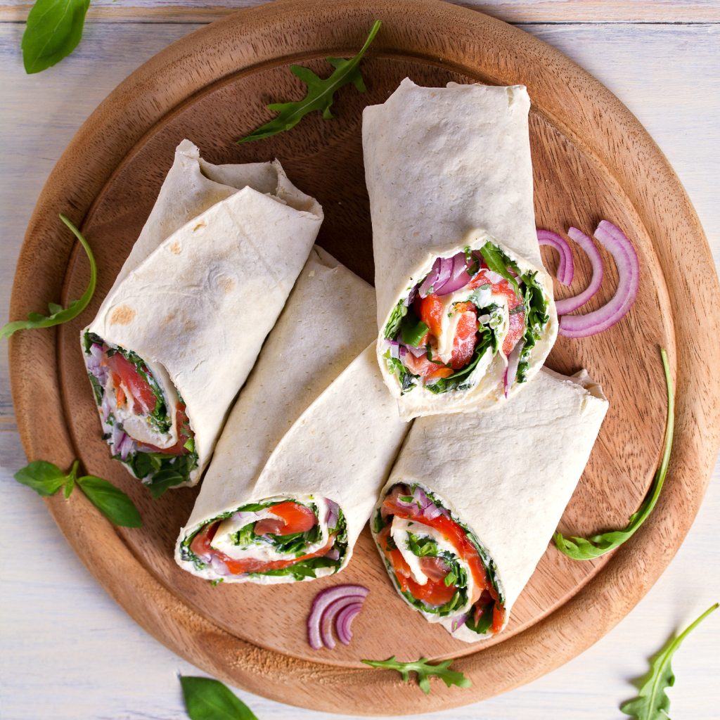 Fechar o wrap se for necessário colocar um palito para não se abrir, e está pronto para comer.